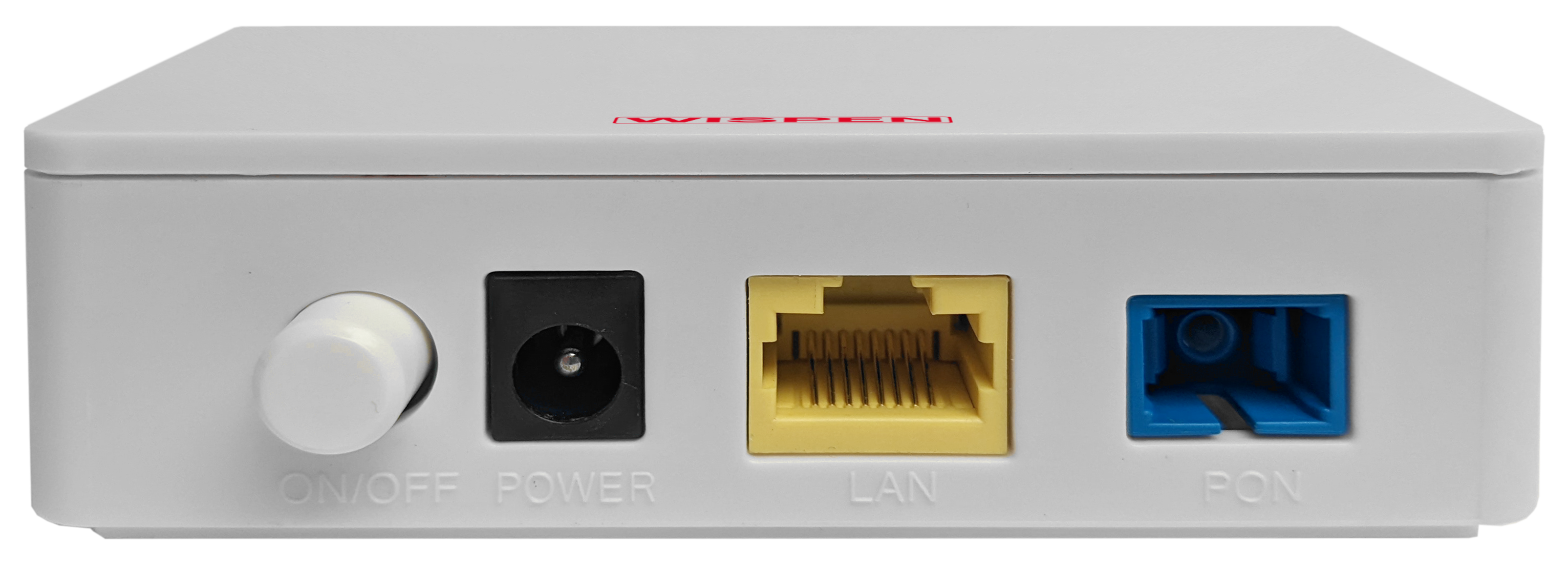 ONU xPON 1G — абонентское устройство Wispen с гигабитным G/EPON (SC/UPC) оптоволоконным WAN-портом и с одним гигабитным RJ-45 LAN-портом.